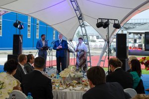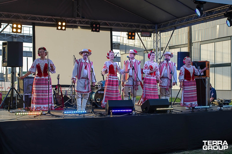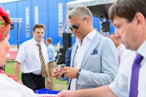 Краткое описание: Подъезжая к территории завода, гости мероприятия уже издалека видели опознавательные шары в небе. Первое, куда попадали гости на площадке, – это настоящий город мастеров белорусских народных ремесел, где они могли понаблюдать за профессионалами, а также попробовать себя в этом деле. Все эти действия сопровождались игрой на гуслях и аниматорами в народном стиле. Далее Гостей приглашали в шатер, где они уже попадали в современную Беларусь: банкет премиум-класса в чистом поле - площадка, оснащенная новейшим оборудованием, обслуживанием на уровне дорогих ресторанов и современная развлекательная программа. Всех клиентов благодарили специально составленными белорусскими гостинцами.