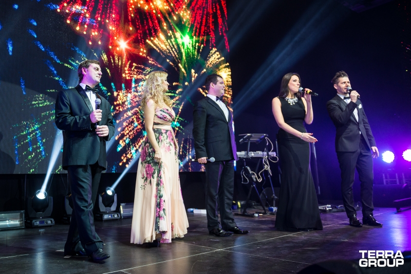 Краткое описание: 25 лет- это существенная дата в жизнедеятельности банка. Мероприятие началось с уникального маппинг-шоу, раскрывающие основные достижения банка, с декорациями 4*6 метров, которые стали украшением сцены на протяжении всего мероприятия. Далее концертную часть открыл уникальный номер «На высоте» с оперными певицами, сидящими на высоте полутора метров над сценой. Также на сцене были реализованы танцевальные постановки с использованием взаимодействия артистов и светодиодного экрана. В программу концерта вошли мировые рок хиты в исполнении Петра Елфимова с живым аккомпанементом от кавер группы. Кульминацией вечера стало исполнение гимна Банка артистами театра Оперы и Балета. Агентством была решена непростая задача: разделение зала на две независимые части при помощи черного кабинета для проведения концерта и фуршета, что позволило решить логистические задачи и создать wow-эффект при подъеме занавеса и переходе гостей во вторую половину зала, где были накрыты банкетные столы.
