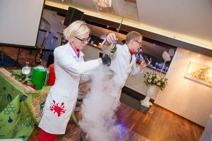 Краткое описание: В начале мероприятия был презентован подарок от семьи - трогательное песочное шоу, которое никого не оставило равнодушным. А далее гостей развлекали артисты и проработанные слайд-шоу, в которых имениннику подбирали двойников и фотографии к различным его периодам жизни. Ярким завершением юбилея стал красочный фейерверк и торт в виде книги жизни, которую уже прожил Владимир, и, конечно, пожелания на следующие 50 лет!