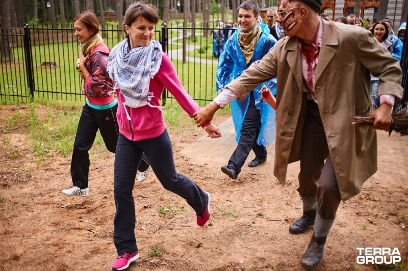 Краткое описание: Билли выкрал ключевого сотрудника компании. Перед коллегами похищенного стоит серьезная задача его спасти, поэтапно проходя неожиданные и действительно страшные испытания. Время ограничено: на все есть только два часа. Спасатели проходят квест и собирают карту, где указана точка, куда всем нужно бежать! Всего спасательным командам предстояло преодолеть 7 зон по мотивам фильма «Пила». Самые смелые искали карту «На дне» ванной с кровью, смекалистые - раскрывали «Секрет мертвеца», храбрые - проходили «Адскую мясорубку», меткие - попадали в «Око смерти». Раз за разом команды возвращались в специально отведенный Штаб. Но на выходе за пределы карты их ждало кладбище с восставшими мертвецами. После прохождения до жути антуражной миссии сотрудники компании расслаблялись в кальянной, зоне аэрографии, играли в волейбол и бильярд. Закончился праздник банкетом с зажигательными танцами.
