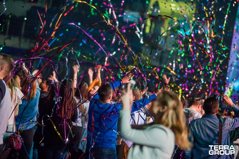 Краткое описание: Каждый этаж Минск-Арены был тематически связан с определённой временной эпохой и задекорирован соответсвующим образом. Было представлено более 10-ти тематических фотозон, которые были реализованы разными технологическими способами. Верхний этаж превратился в танцевальную площадку, где non-stop играла электронная музыка, а напитки и закуски были приготовлены со стороны партнёров. Для мероприятия была сконструирована специальная сцена, которая стала ключевым элементом программы мероприятия. Сама же программа носила в себе элементы режиссёрской задумки и чётко прописанного сценария. Хореграфические номера являлись специальной постановкой для этого события. В качестве хэдлайнера выступили группы Крамбамбуля, Swanky Tunes, Баста.
