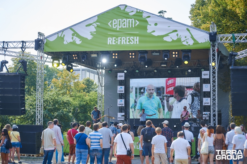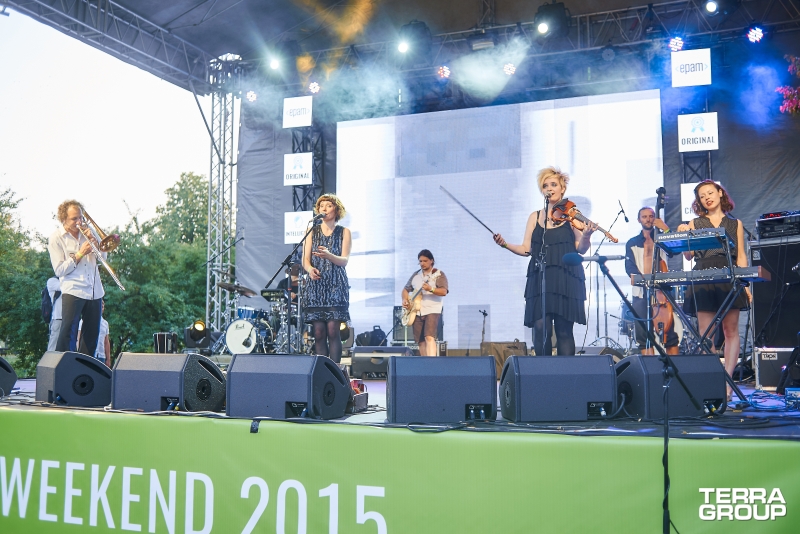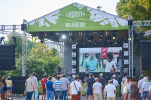 Краткое описание: В самом центре Минска в один из самых жарких дней августа собрались лучшие умы IT-индустрии, чтобы отметить завершение IT Week 2015. EPAM Re:Fresh IT Weekend 2015 – это невероятное событие, которое «взарвало» своей энергетикой самое сердце нашей столицы. EPAM Re:Fresh – это не только визуальный ребрендинг компании, это обновленные, свежие, готовые к новым победам и результатам сотрудники. Driven, expert, сandid, original, creative, intelligent. Шесть personalities каждого уникального сотрудника, шесть граней компании, шесть корпоративных дверей, за которыми каждого ждали новые возможности; десятки эксклюзивных ивент-фишек, целый остров активностей и вовлечений, прямой телемост с IT Weekend 2015 в Санкт-Петербурге и Киеве, а также два ярких флешмоба. И даже перечисление всего этого не отразит ту энергетику и незабываемую атмосферу, которые царили 8 августа на острове. Кульминацией вечера стал «сеанс музыкальной терапии» в стиле ска, кумбия и регги от специального Гостя из Санкт-Петербурга Marksheider Kunst, после которого весь Минск осветился огнями незабываемого фейерверка и логотипом компании прямо в центре реки Свислочь.