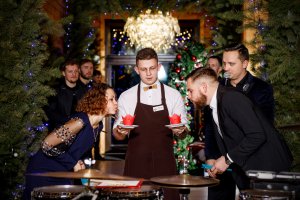 Краткое описание: Новый год – время, когда энергия бьет ключом и главное – направить ее на реализацию самых важных целей. Компания НПО Пассат – креативная волшебная фабрика, которая помогает исполняться творческим и профессиональным желаниям своих сотрудников. Рождественские носочки с конфетами и подарками, беспроигрышная лотерея и праздничная фотозона «В кольце уюта» – все то, что создаст праздничную атмосферу и подарит волшебство на целый год. В качестве вовлечений для гостей работала зона виртуальной реальности с новогодними играми. В этот вечер ярким номером открытия стало эмоциональное выступление барабанщиком Stress, которые также пригласили на сцену гостей попробовать себя в роли настоящих музыкантов. Уютные интерактивные игры у камина, самые добрые пожелания от коллег, караоке и танцевальные баттлы – все то, что ставится неотъемлемой частью новогоднего вечера. И какой же Новый год без главных героев. Дед Мороз и Снегурочка зарядились всех гостей еще большим позитивом и подарили каждому по предсказанию на 2020 год. Ярким акцентом новогоднего уюта стал красочный салют с зажжением бенгальских огней.