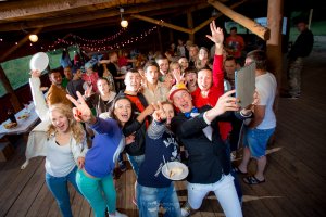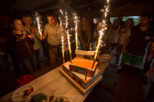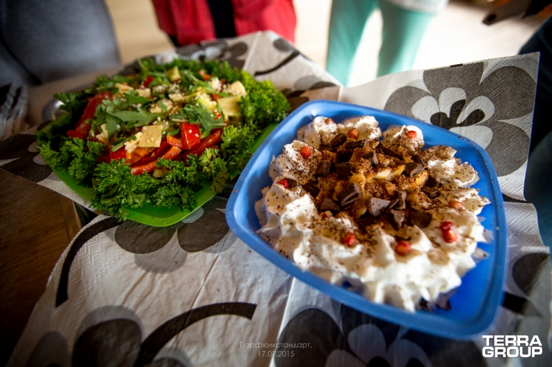 Краткое описание: Сотрудники компании приняли участие в кулинарном турнире под названием «Голодные игры». Им предстояло не просто приготовить блюда для конкурса, но и найти для этого ингредиенты, надежно спрятанные в лесу. Критериями оценки были совместимость продуктов, внешний вид, вкусовые качества блюда и его презентация. В рамках вечернего банкета сотрудники отметили День рождения компании – 14 лет. В финале вечера директор вынес дизайнерский торт с фотографиями коллектива.