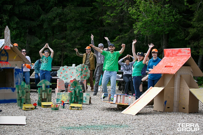 Краткое описание: В рамках выездного мероприятия сотрудники компании отдыхали с пользой для планеты. Они вместе построили великолепный экологичный город из картона вторичной обработки, посадили деревья, познакомились с редчайшим музыкальным инструментом - хангом. Также они всей семьей занимались йогой, опробовали рисунки хной и отдыхали в гамаках под звуки природы со всех уголков Земли. На мероприятии была исключена пластиковая посуда и вредная для здоровья пища. Также сотрудники привезли с собой макулатуру, которая вместе с картонным городом после праздника отправилась на переработку. В этот день все участники мероприятия достигли максимального единения с природой и чувства внутренней гармонии.