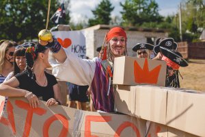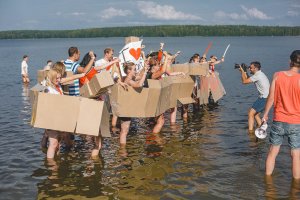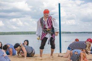 Краткое описание: Летнее мероприятие ХКБанка состояло из 5 мероприятий – для каждого районного центра отдельно. Все они были объединены одной идеей: сотрудники на 1 день превращались в большую съемочную группу. С ними работали профессиональные режиссеры и операторы. На каждое мероприятие была задана своя тема с отдельно проработанным сценарием. Но все сценарии заканчивались по одному принципу – две враждующих стороны обретали внутрикорпоративные ценности и объединялись благодаря ним. Монтаж фильмов проходил в тот же день, и уже в конце вечера участникам демонстрировалось готовое кино, где они – главные действующие лица. Общее количество участников проекта составило 1 222 человека. 10 августа в съемках принимал участие РЦ «Восток», мероприятие проходило в Могилевской области. Идея сценария: пираты Хоум Кредит Банка.