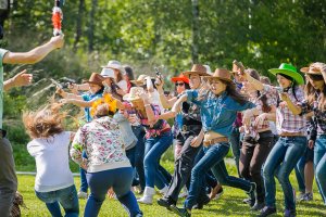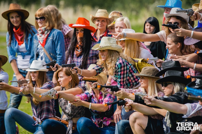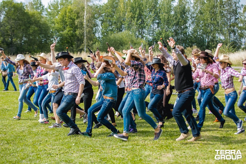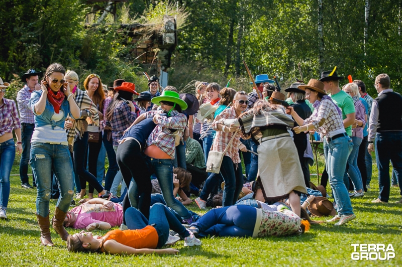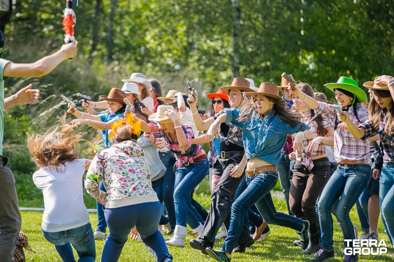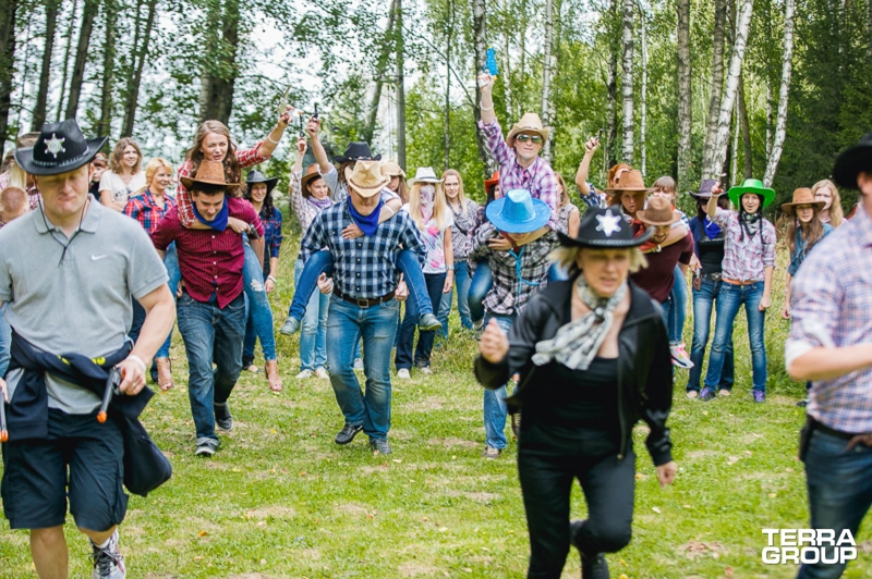 Краткое описание: Летнее мероприятие ХКБанка состояло из 5 мероприятий – для каждого районного центра отдельно. Все они были объединены одной идеей: сотрудники на 1 день превращались в большую съемочную группу. С ними работали профессиональные режиссеры и операторы. На каждое мероприятие была задана своя тема с отдельно проработанным сценарием. Но все сценарии заканчивались по одному принципу – две враждующих стороны обретали внутрикорпоративные ценности и объединялись благодаря ним. Монтаж фильмов проходил в тот же день, и уже в конце вечера участникам демонстрировалось готовое кино, где они – главные действующие лица. Общее количество участников проекта составило 1 222 человека. 23 августа в съемках принимало участие минское подразделение, мероприятие проходило в Минской области. Идея сценария: вестерн (ковбои против индейцев).