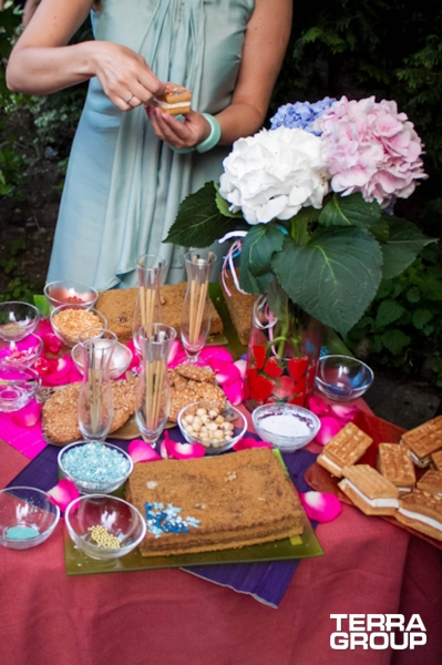 Краткое описание: В рамках летнего корпоративного мероприятия группы газет Stroyka.by, мы отметили 1 год порталу «Поисковик», что и было отражено в концепции мероприятия. Был организован очень теплый и семейный праздник, как и полагается в День рождения. Благодаря особенностям площадки (наличию огороженного парка), праздник проходил одновременно в зале ресторана и под открытым небом – в саду. На улице разместились зоны активации (кальянная зона, парфюмерный бар, кондитерская зона с мастер-классом), там же работали аниматоры и ростовые куклы, в то время как в зале проходила основная программа.